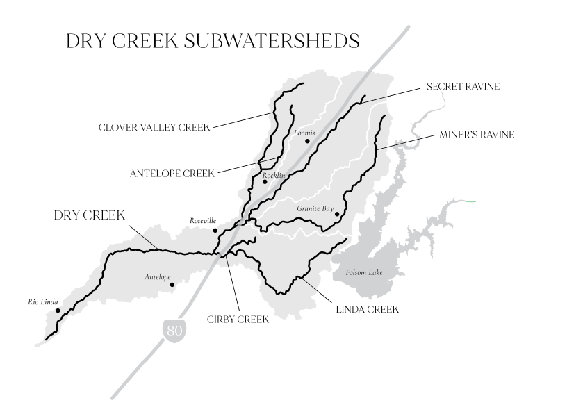 All rain that falls in the Dry Creek Watershed moves into a family of